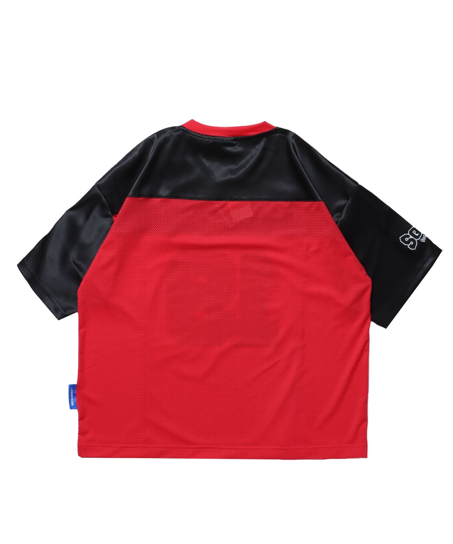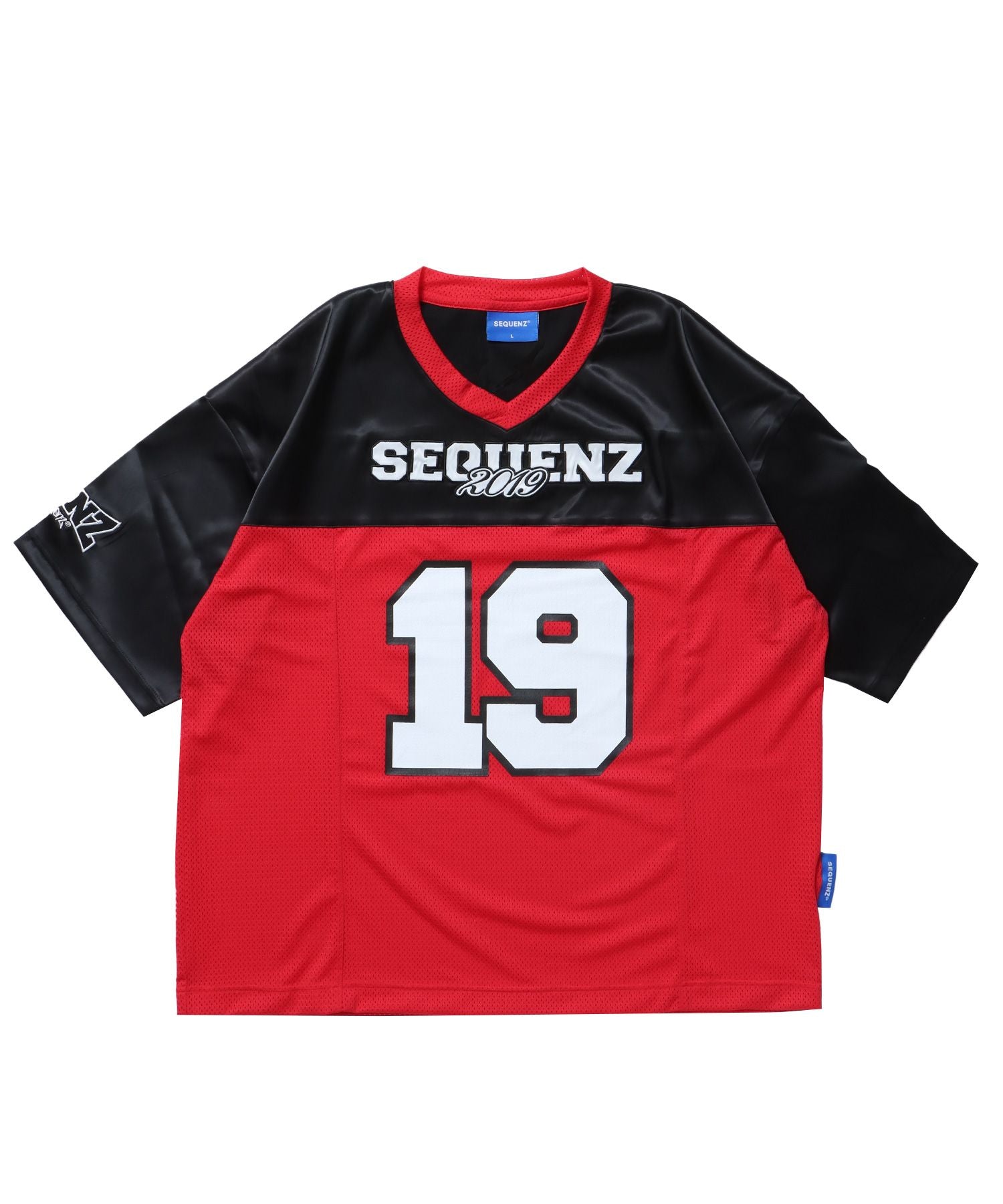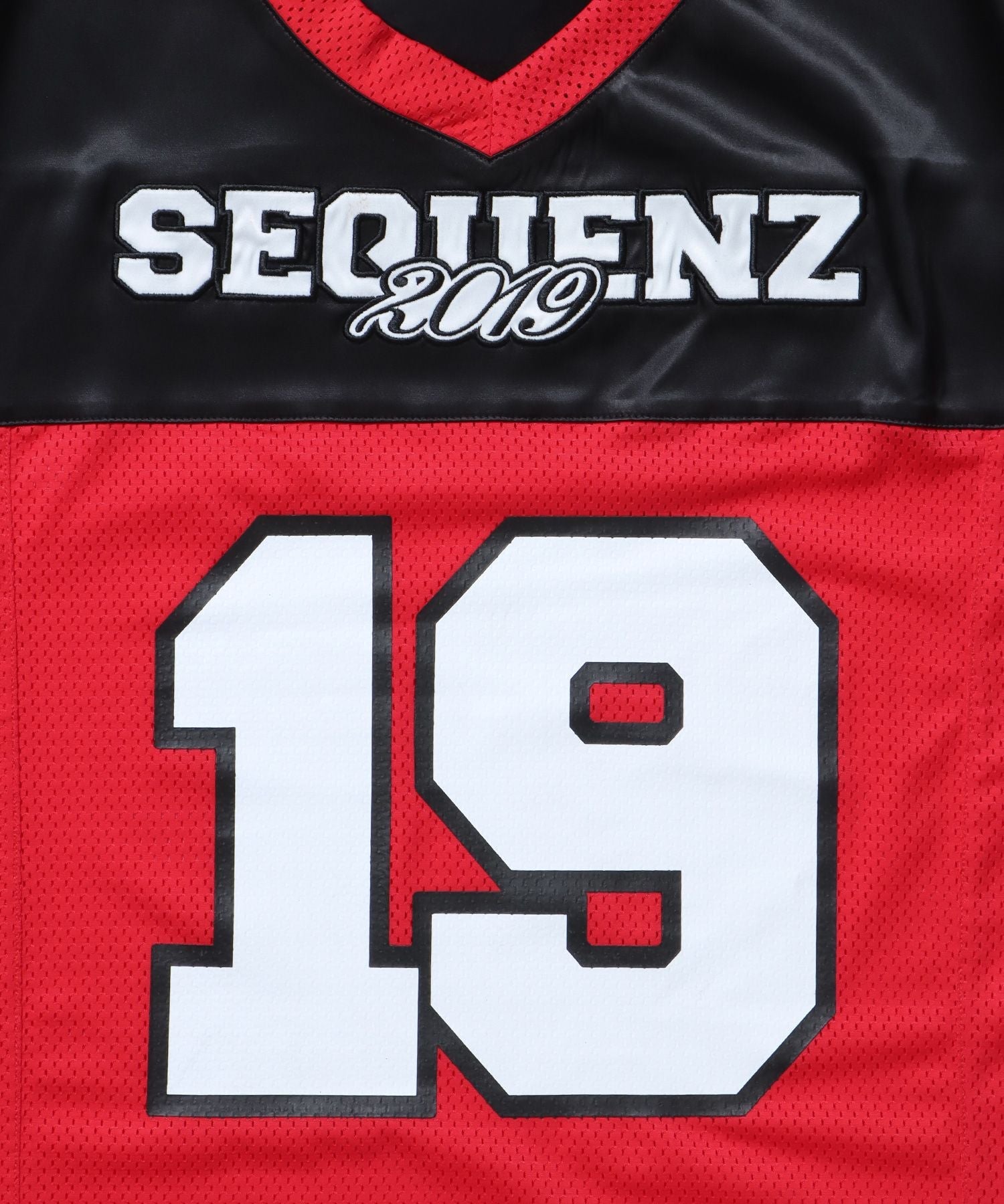 シークエンズからサテン×メッシュ生地の合わせでレディースにもおすすめな大注目のフットボールシャツが新登場!左右の袖にワッペンを施し、ナンバリングのラバープリントがストリート系スポーティー系にハマる洗練された雰囲気をプラスします。おすすめカラーは、サーモンピンク×カーキでトレンド感満載の夏必須アイテムとなっております。全体的にシンプルに作り上げていて、トレンドのサイジングに仕上げており旬なスタイリングも楽しめ、ストリート系のコーデにも非常に合います。ザ・ベーシックなブラック、レッド、ネイビーカラーに加え、おすすめなトレンドのカーキカラーも展開。