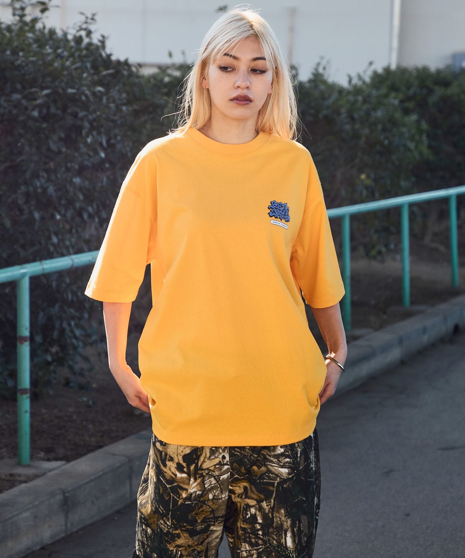 OVERLAP TEE / Tシャツ グラフィティ クルーネック オーバーサイズ ワンポイント イエロー
