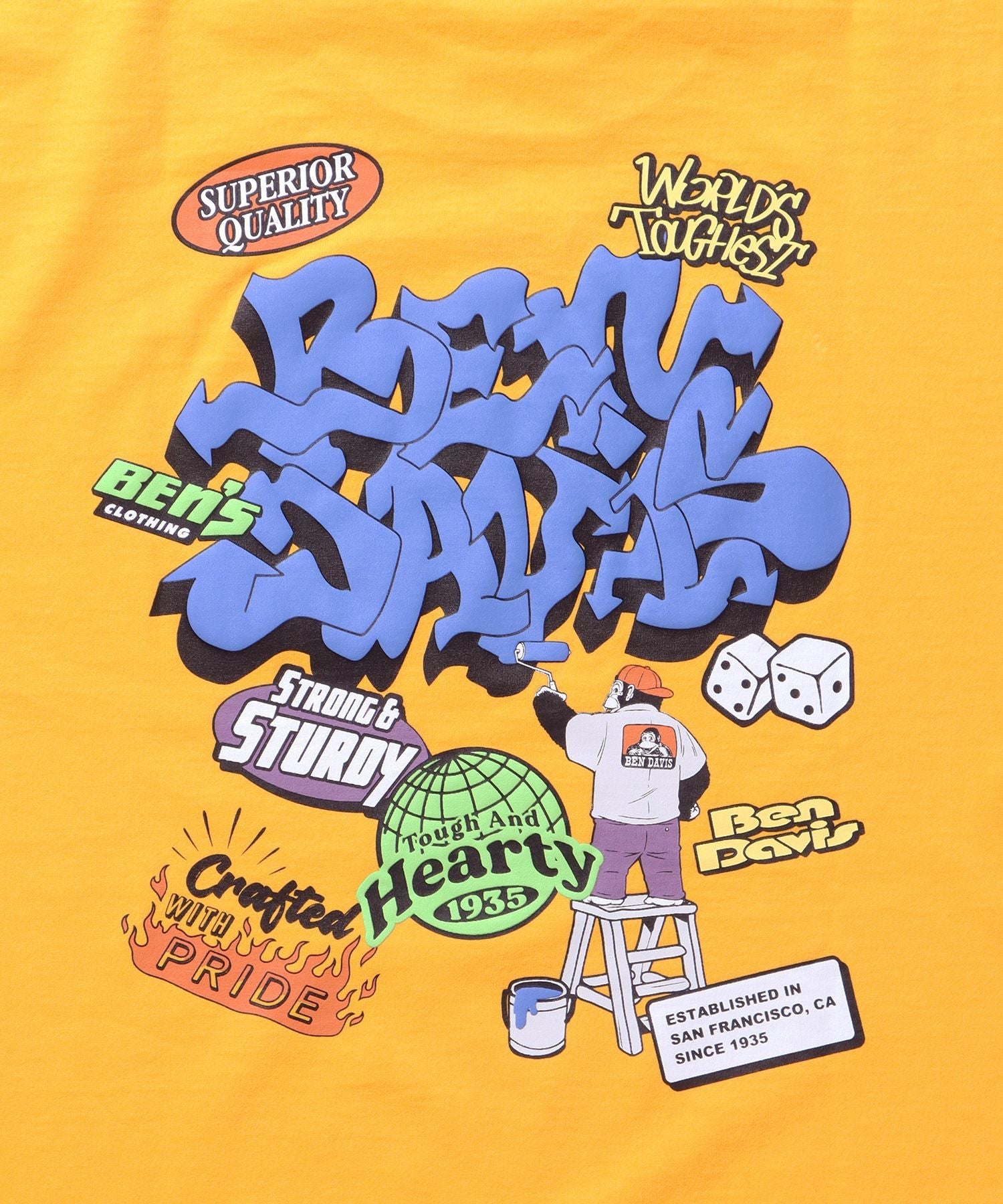 ベンデイビスから毎年人気博しているスローアップグラフィティ調のメインロゴに様々なモチーフを掛け合わせたカラフルなグラフィックTシャツが再登場!バックはラバープリントと発泡プリントを織り交ぜた立体的なデザインを表現し、スローアップグラフィティ調のメインロゴクオリティーがストリート系にハマる洗練された雰囲気をプラスします。全体的にシンプルに作り上げていて、トレンドのサイジングに仕上げており旬なスタイリングも楽しめ、ストリート系や古着系コーデにも非常に合います。ザ・ベーシックなブラック、ホワイト、ブルーグレイカラーに加え、ベンデイビスでは珍しいイエローカラーも展開。